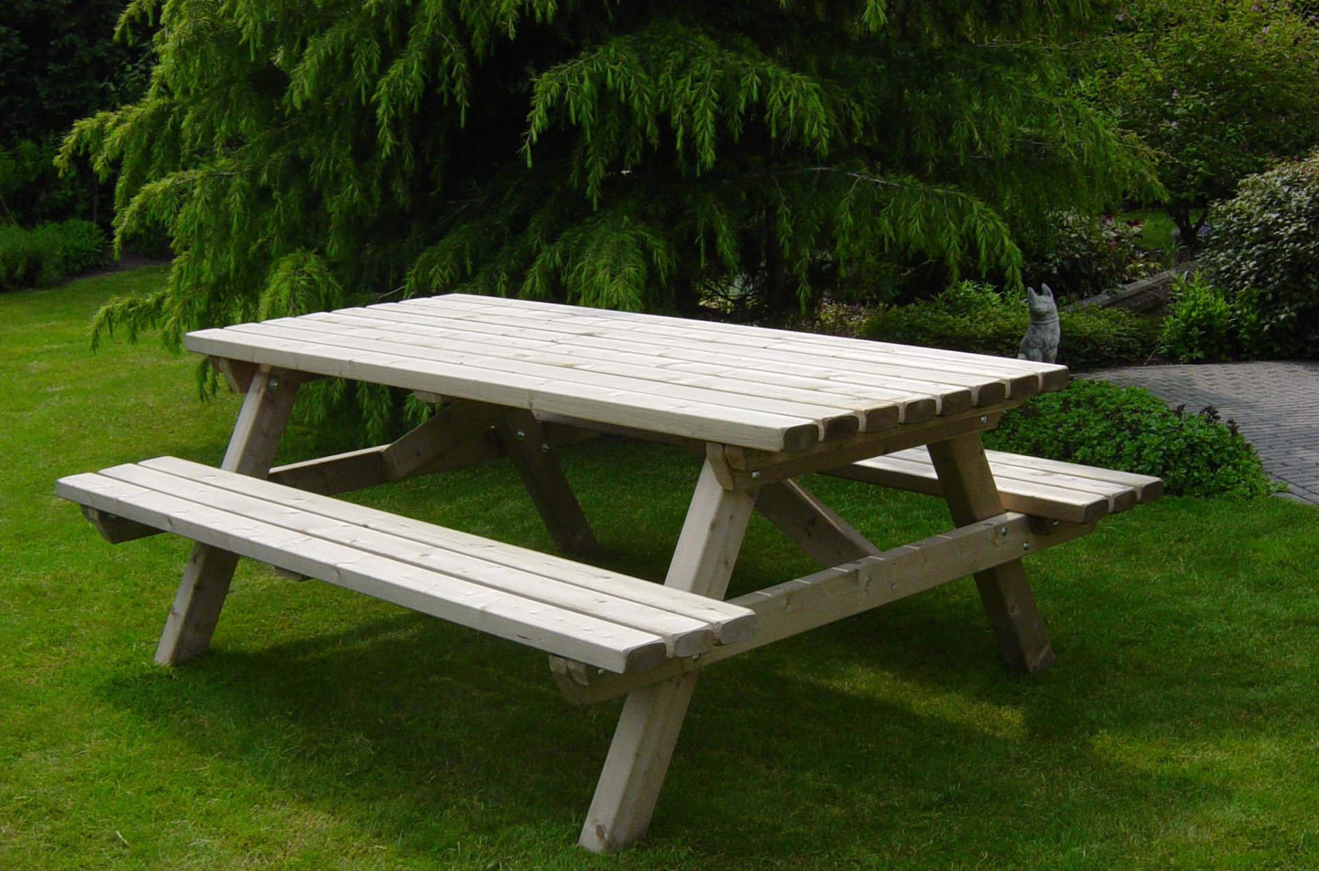 Gemaakt van verduurzaamd vurenhout, blad- en zittingdikte 45 mm, zeer solide picknicktafel om jaren plezier van te hebben.